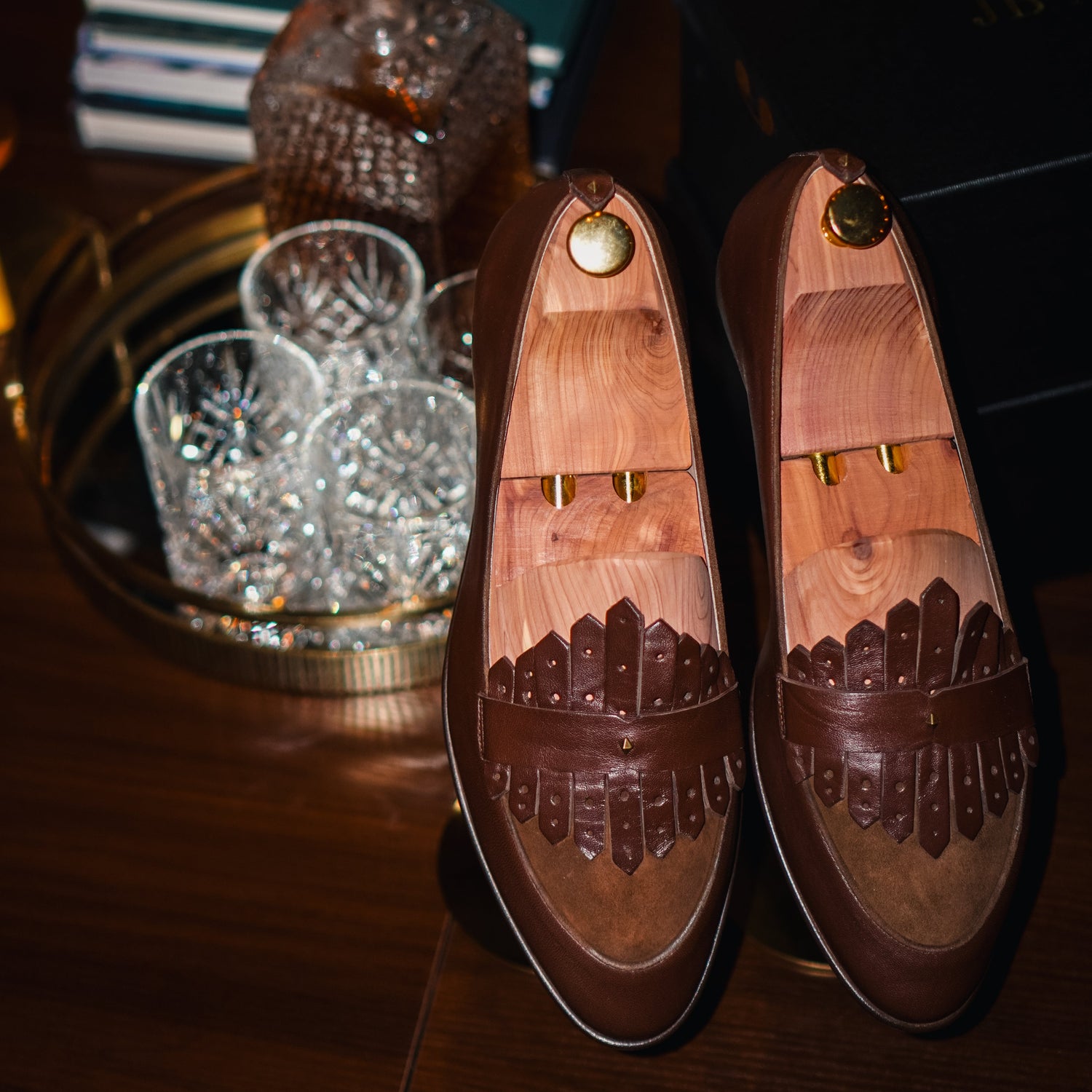 The quiet focus of the artisans as they hand stitch the upper. The gentle brushing of the leather before polishing. The moment a finished pair is lifted from the bench and inspected under natural light to ensure the grain catches just the right amount of sheen.